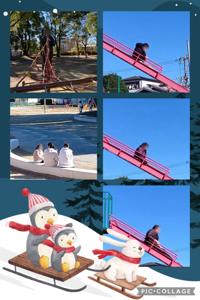 お子ちゃまが遊具から離れた隙を狙い、各々好きな遊具で遊び楽しく過ごされていました!